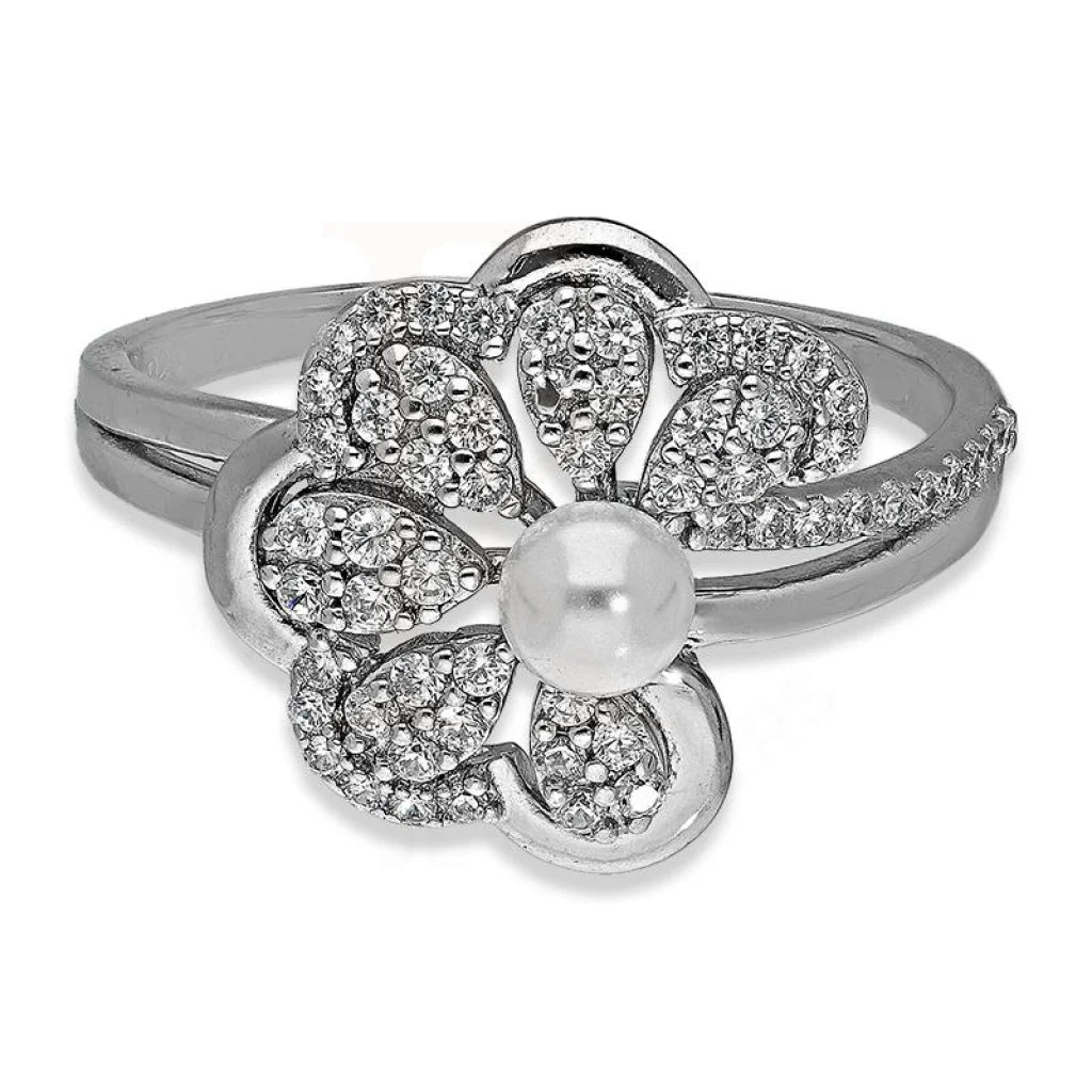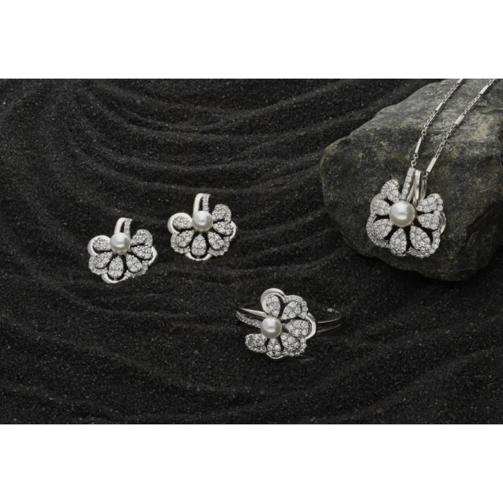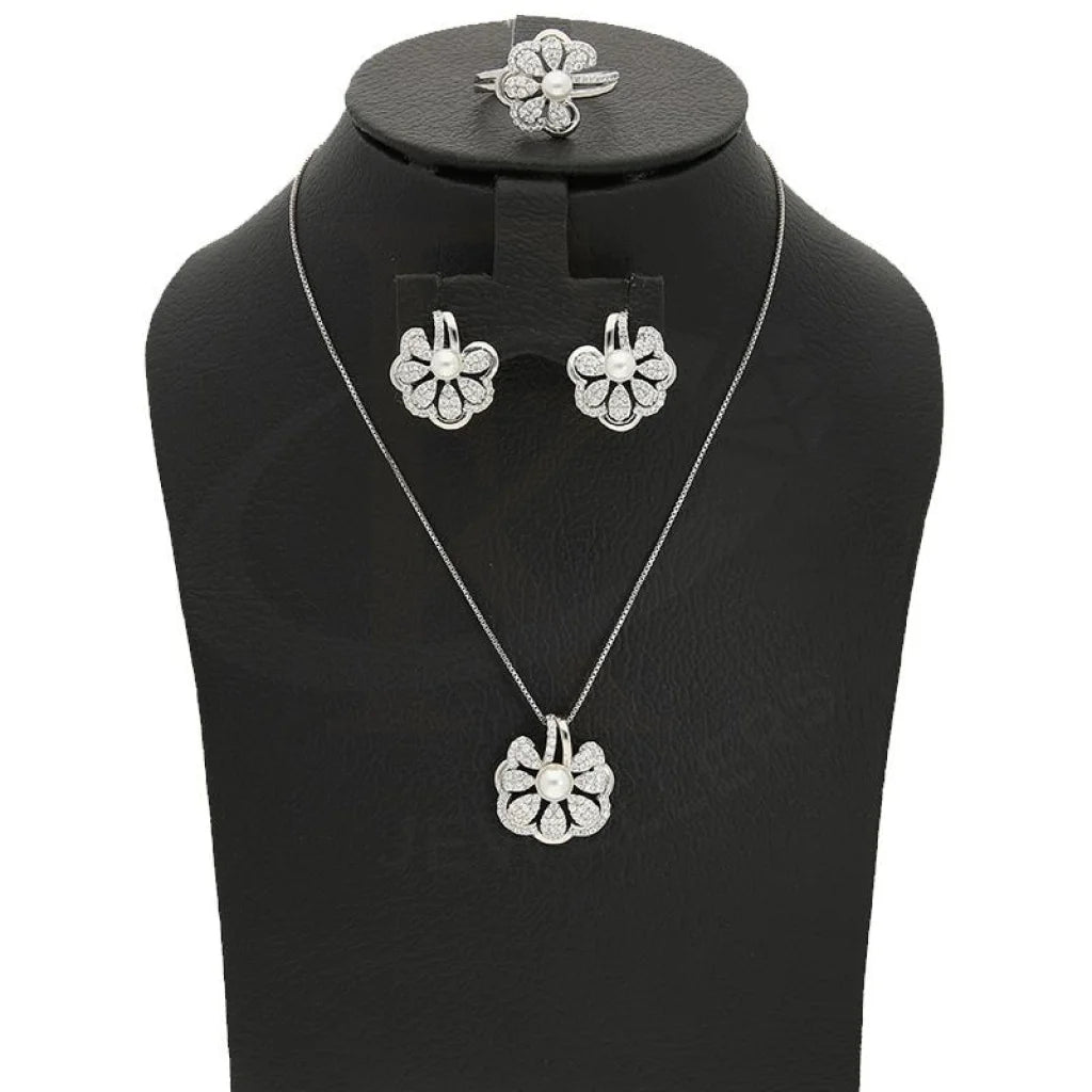 Sterling Silver 925 Flower Shaped Pearl Pendant Set (Necklace, Earrings and Ring) - FKJNKLSTSL2291