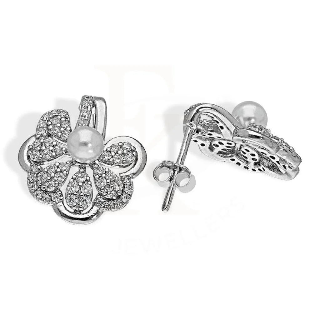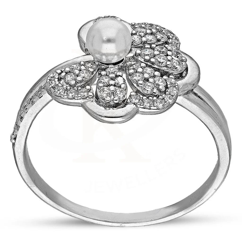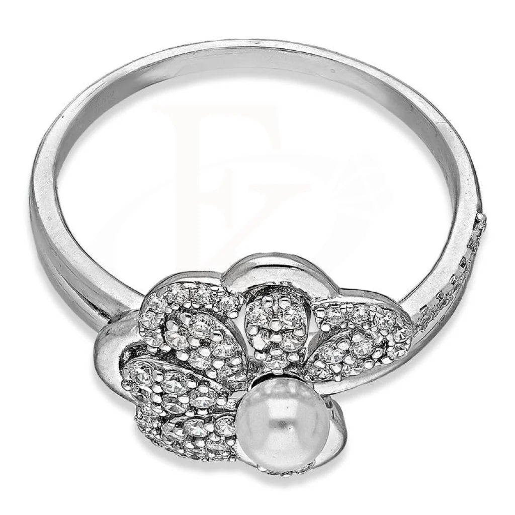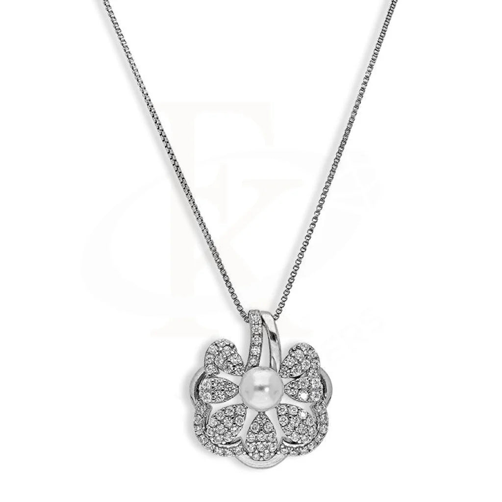 Sterling Silver 925 Flower Shaped Pearl Pendant Set (Necklace, Earrings and Ring) - FKJNKLSTSL2291
