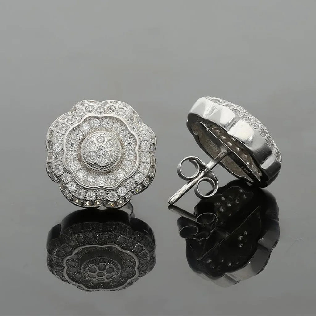 Sterling Silver 925 Flower Shaped Stud Earrings - FKJERNSL2987