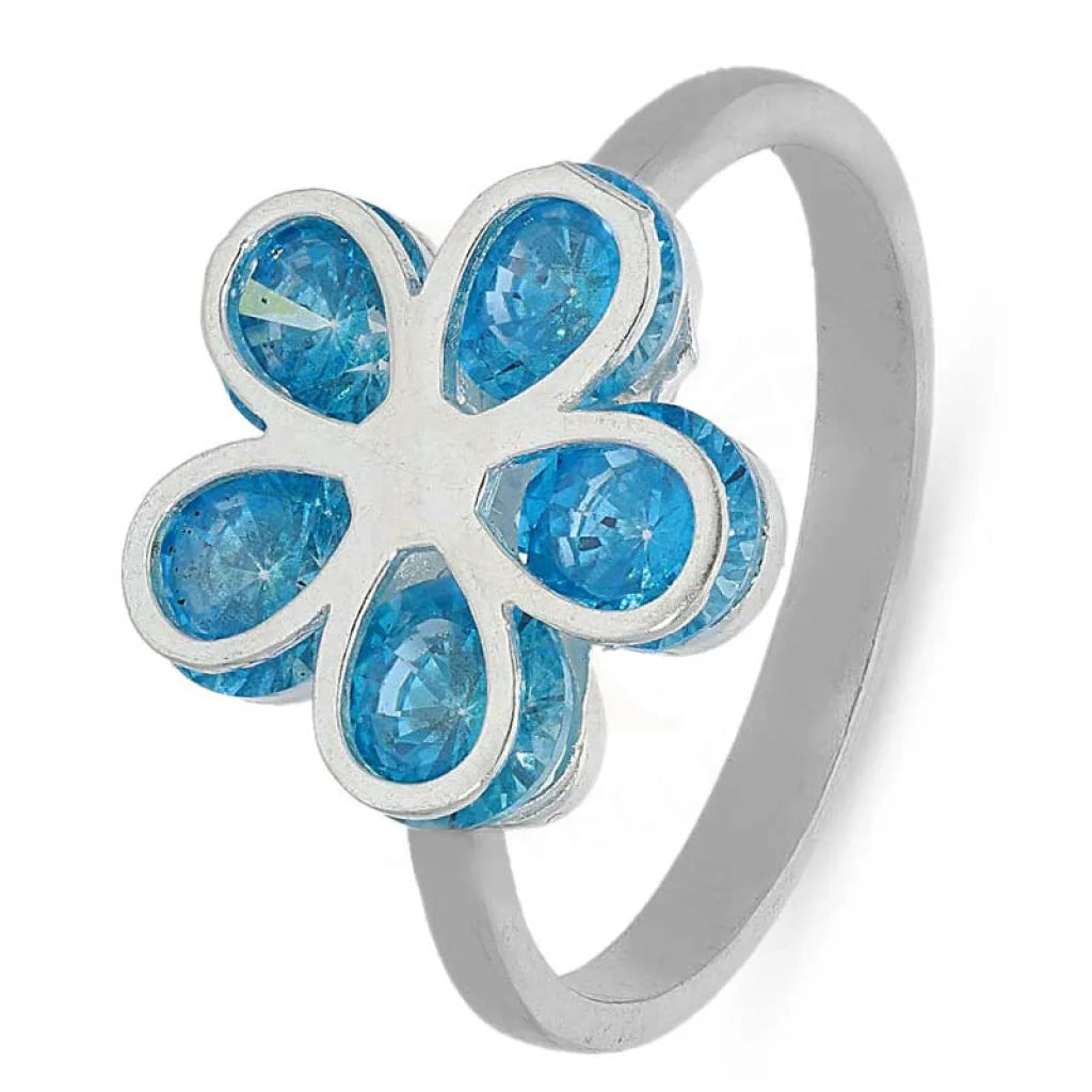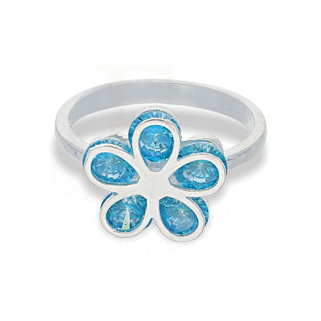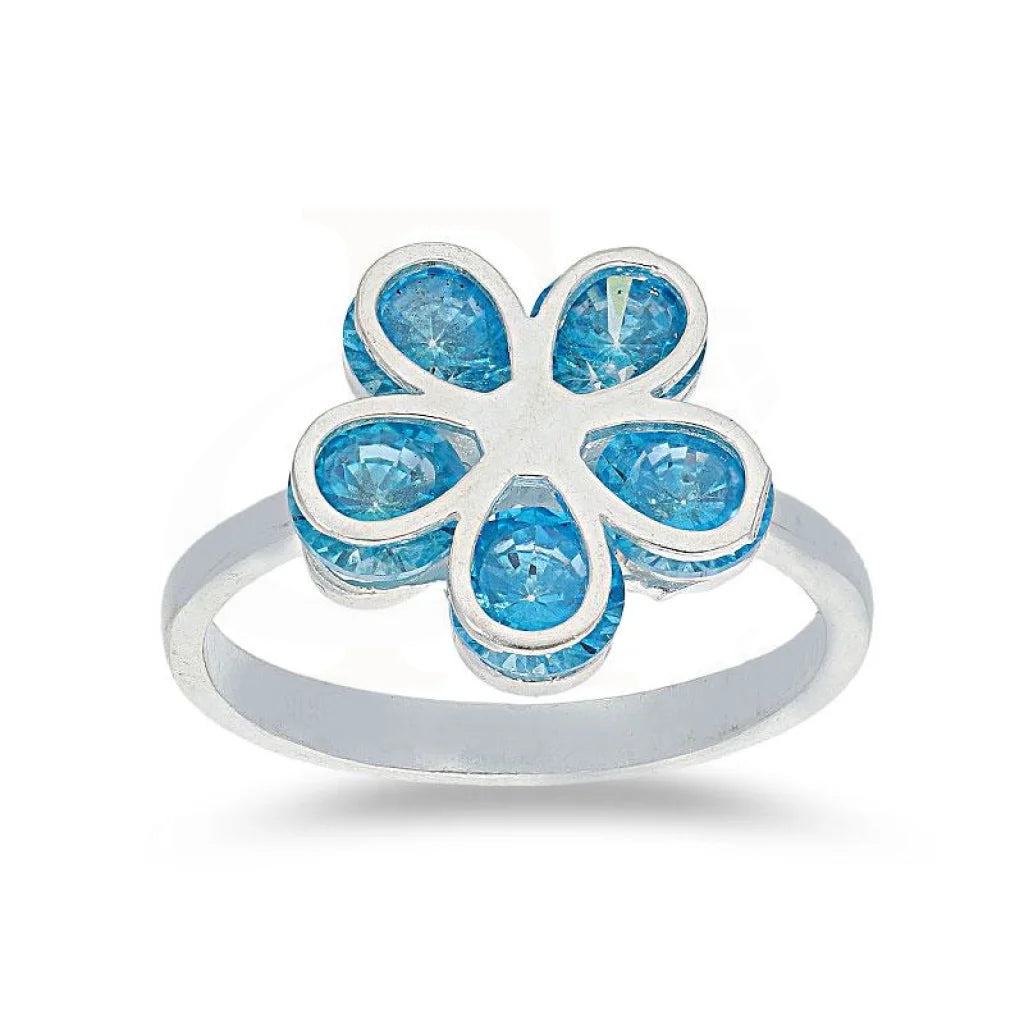 Sterling Silver 925 Flower with Aquamarine Style Stones Ring - FKJRNSL2124