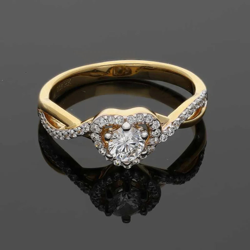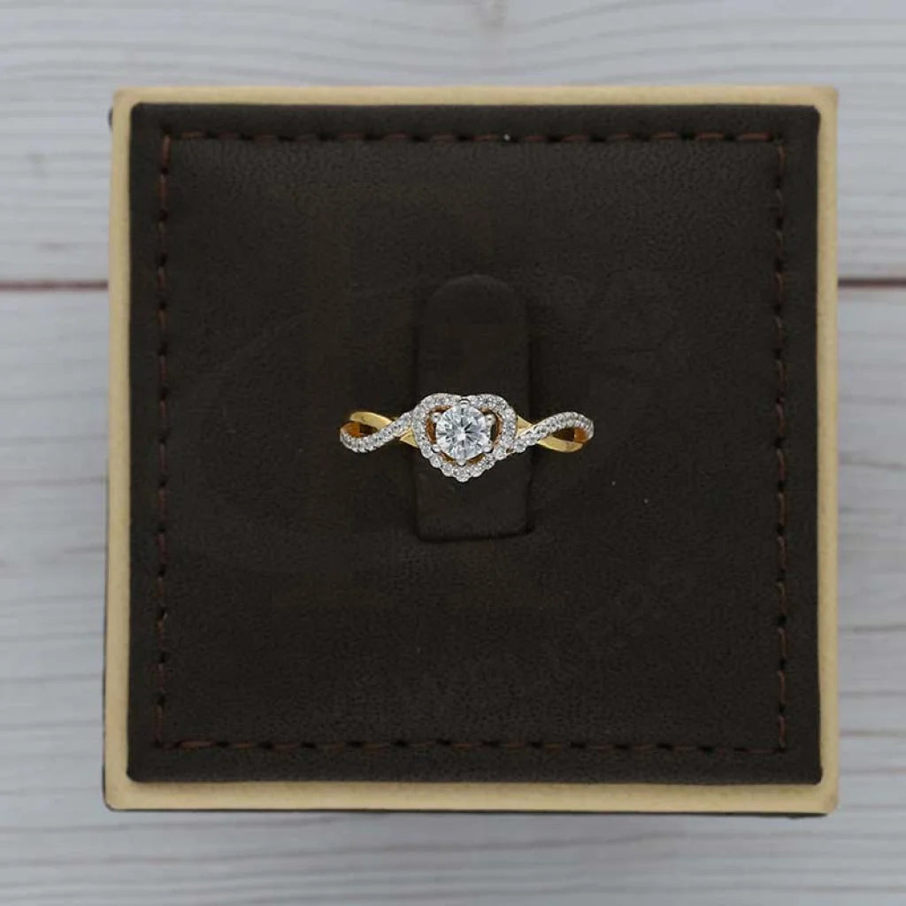 Sterling Silver 925 Gold Plated Heart Shaped Solitaire Ring - FKJRNSL3535