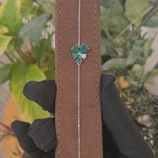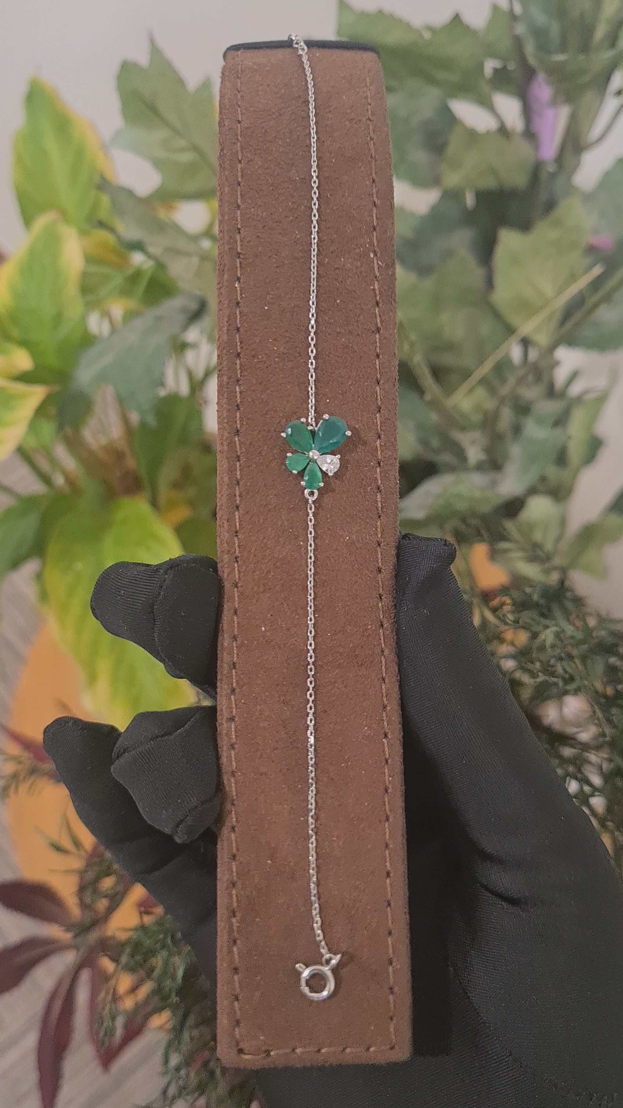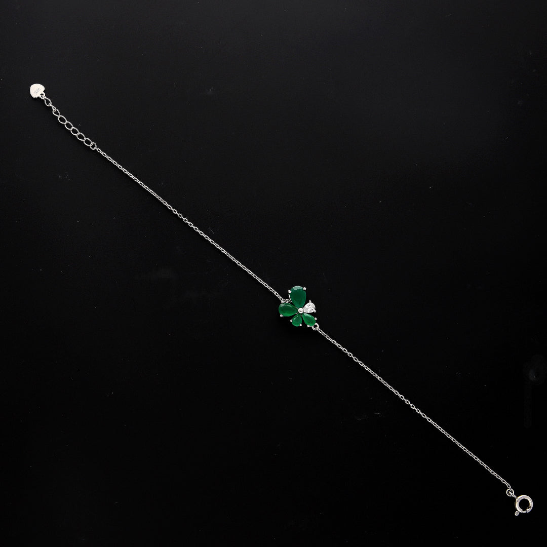 Sterling Silver 925 Green Floral Bracelet - FKJBRLSL10687