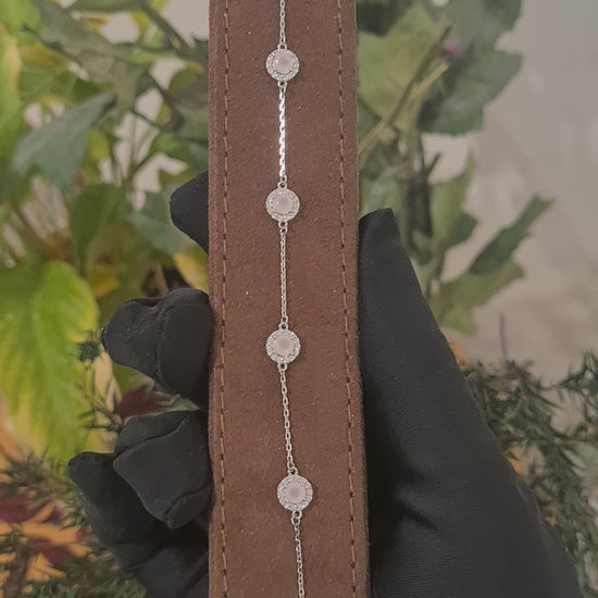 Sterling Silver 925 Round Pink Crystal Bracelet - FKJBRLSL10688