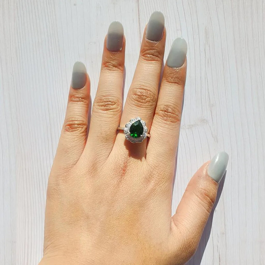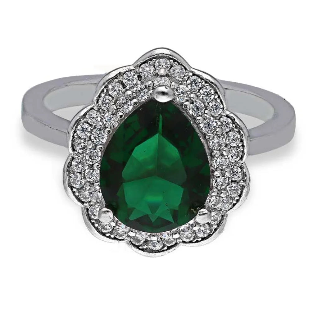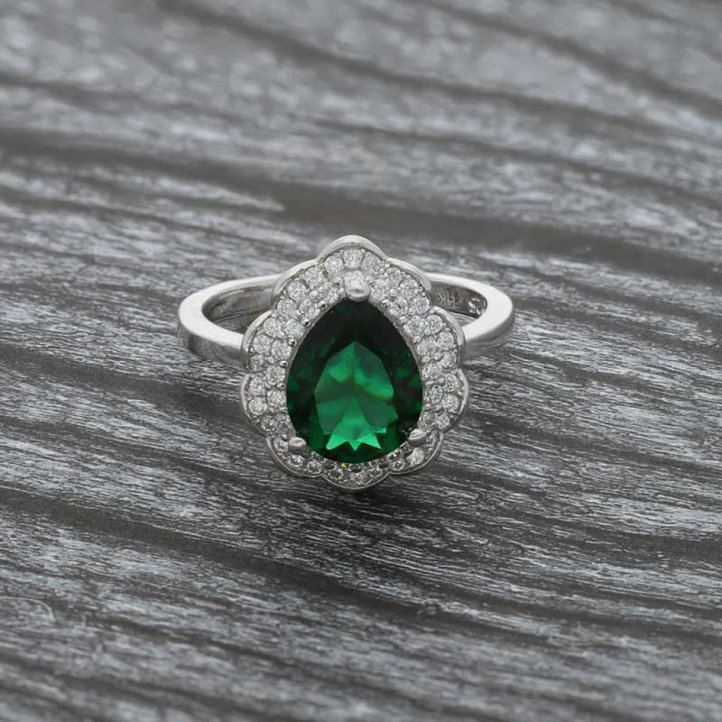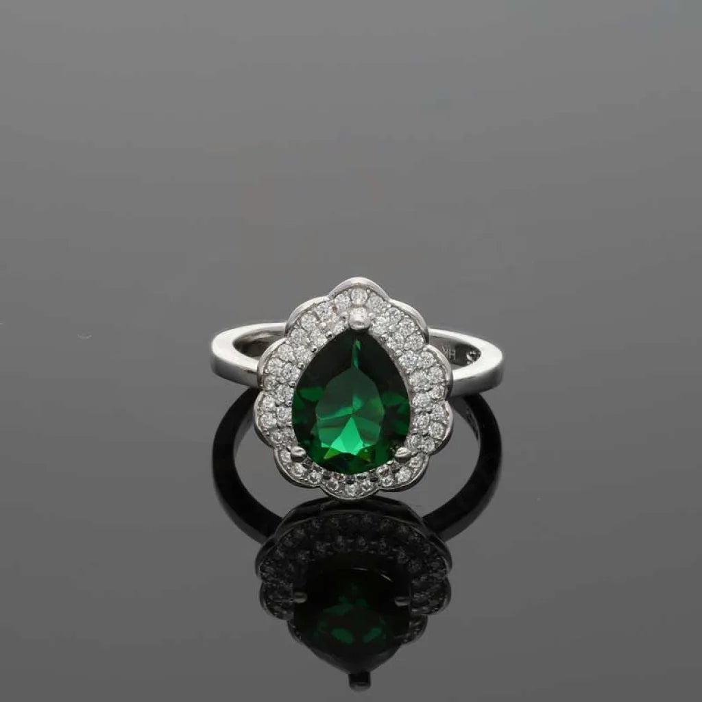 Sterling Silver 925 Green Pear Shaped Solitaire Ring - FKJRNSL3517