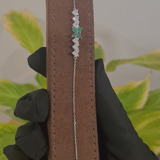 Sterling Silver 925 Green Sparkling Heart Bracelet - FKJBRLSL10546