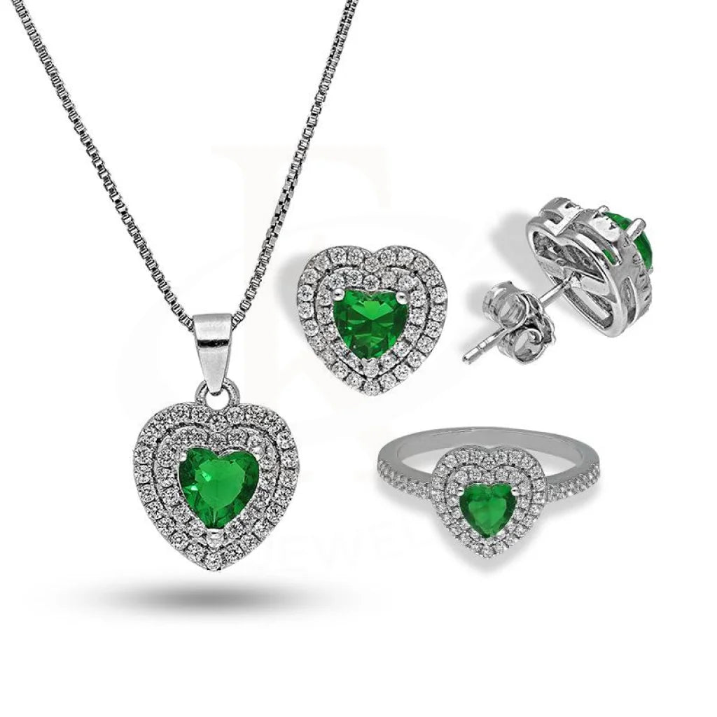 Sterling Silver 925 Heart Shaped Solitaire Pendant Set (Necklace, Earrings and Ring) - FKJNKLSTSL2294