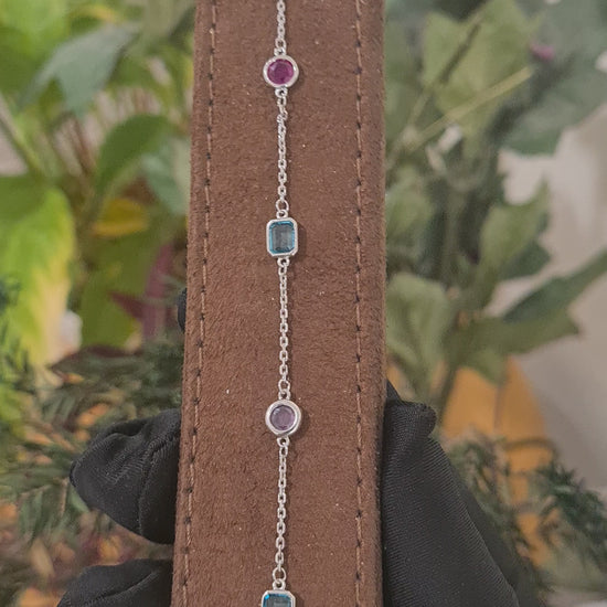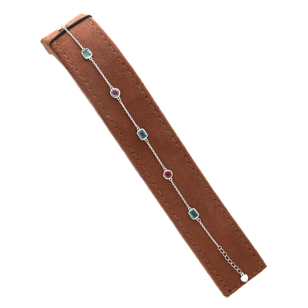 Sterling Silver 925 Multi Crystal Bracelet - FKJBRLSL10689