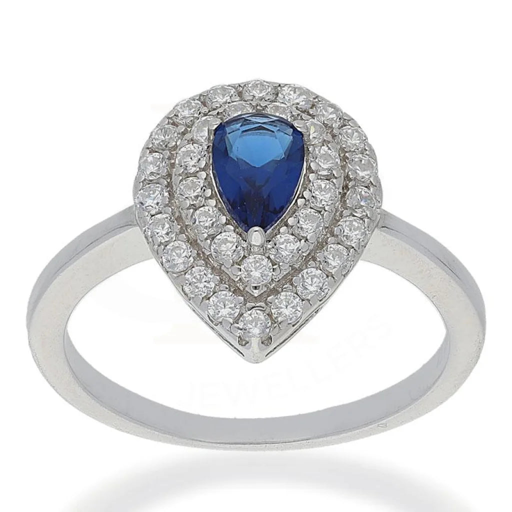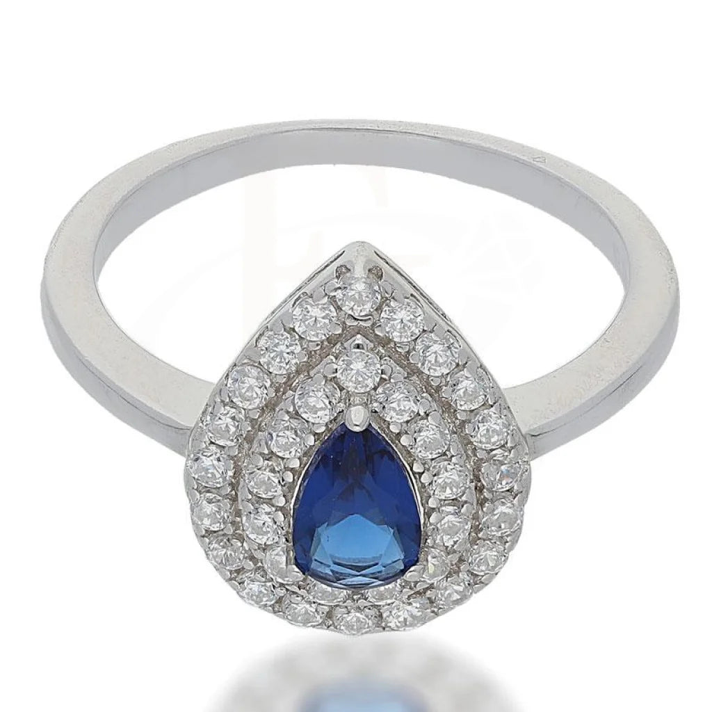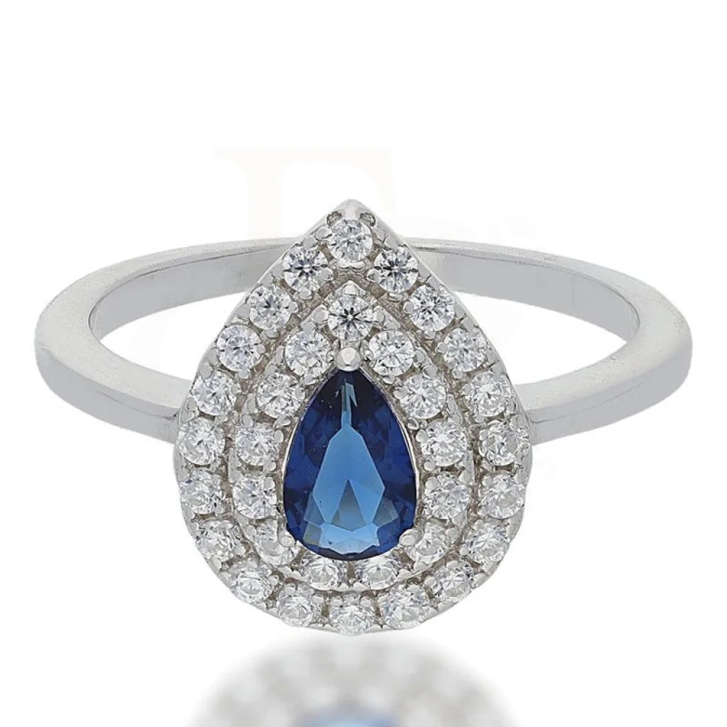 Sterling Silver 925 Pear Shaped Blue Solitaire Ring - FKJRNSL2491