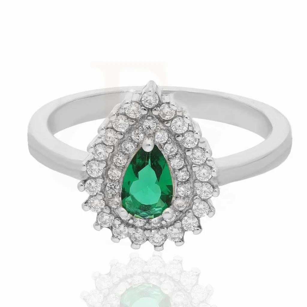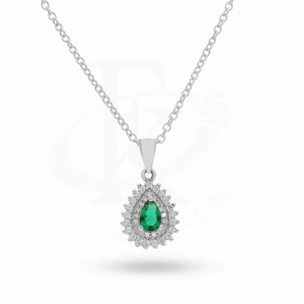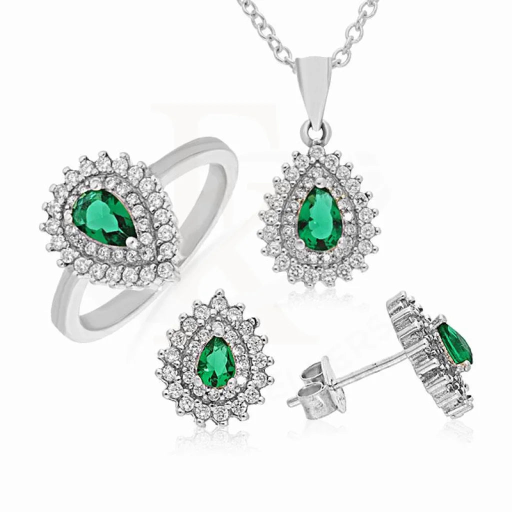 Sterling Silver 925 Pear Shaped Green Solitaire Pendant Set (Necklace, Earrings and Ring) - FKJNKLSTSL2111
