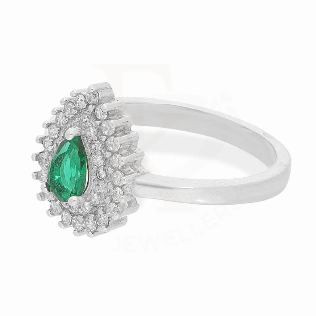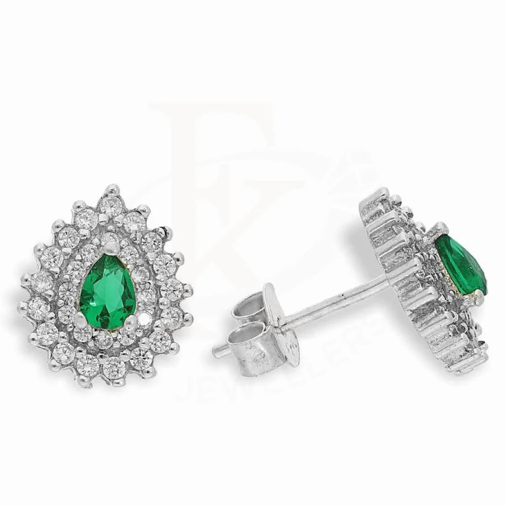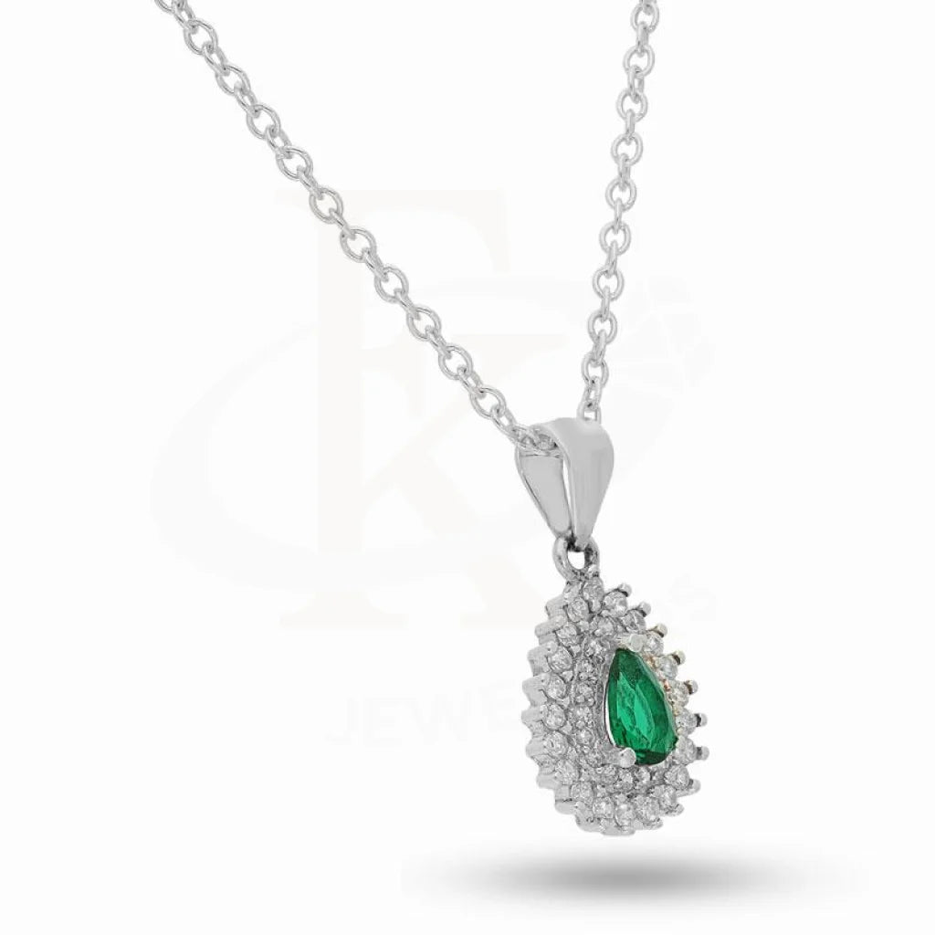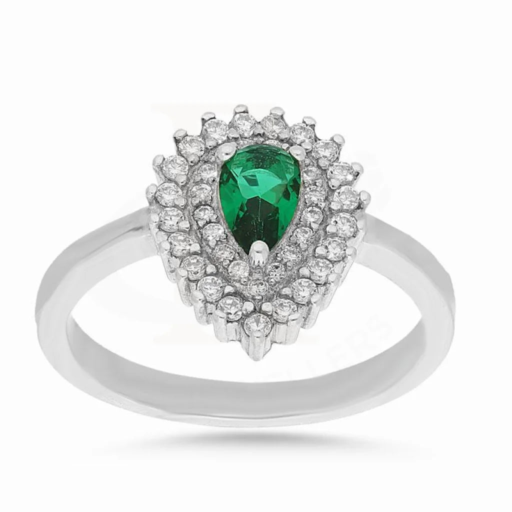 Sterling Silver 925 Pear Shaped Green Solitaire Pendant Set (Necklace, Earrings and Ring) - FKJNKLSTSL2111