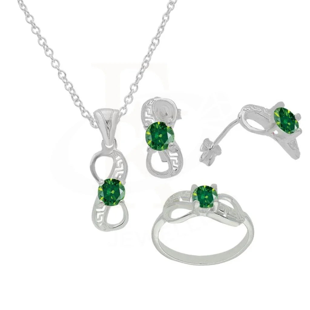 Sterling Silver 925 Pendant Set (Necklace, Earrings and Ring) - FKJNKLST1808