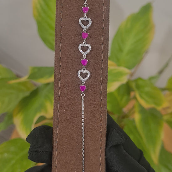 Sterling Silver 925 Pink Sparkling Heart Bracelet - FKJBRLSL10544