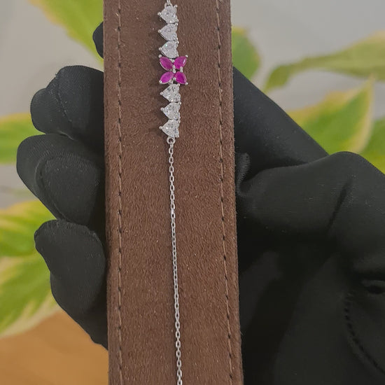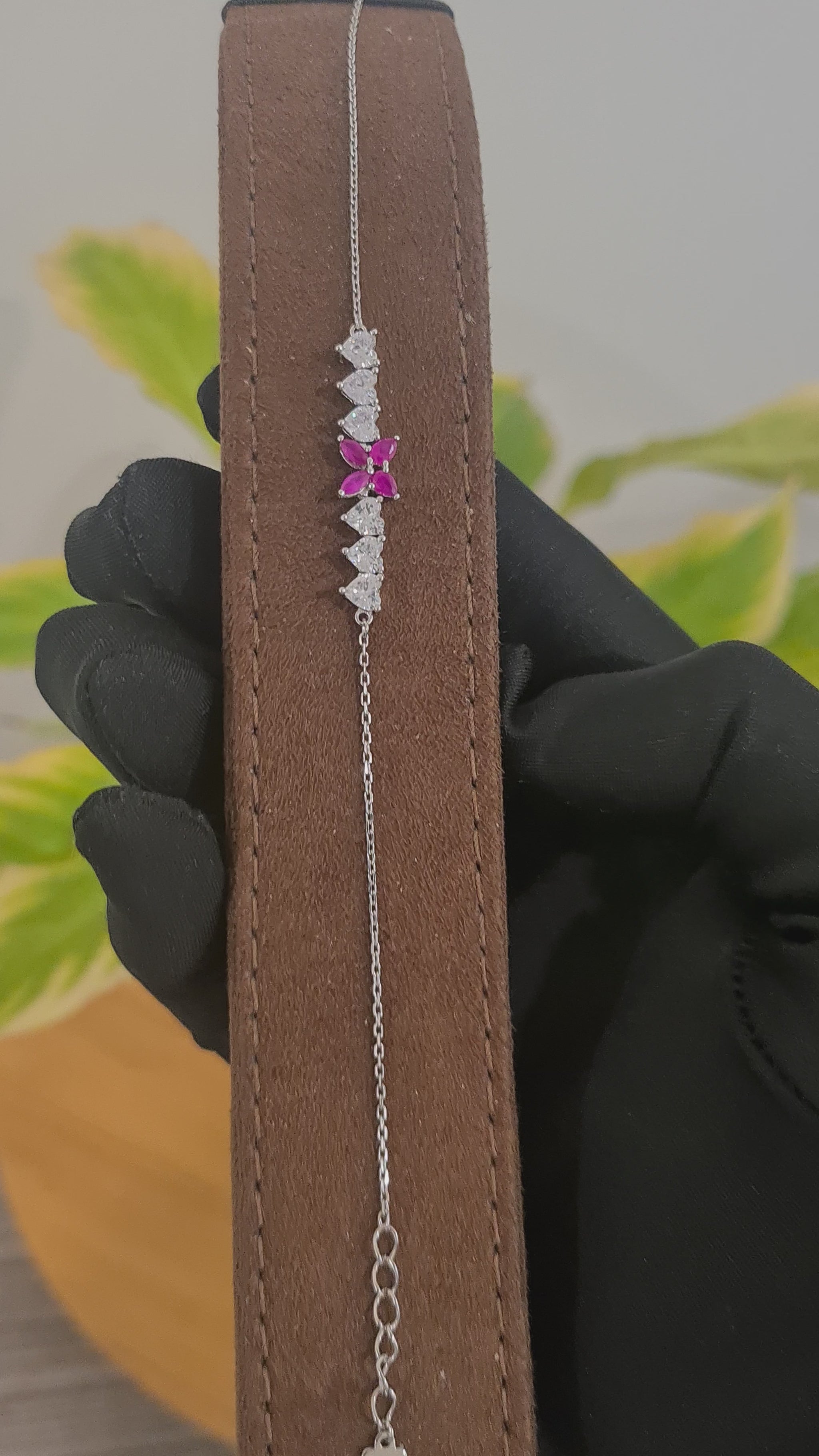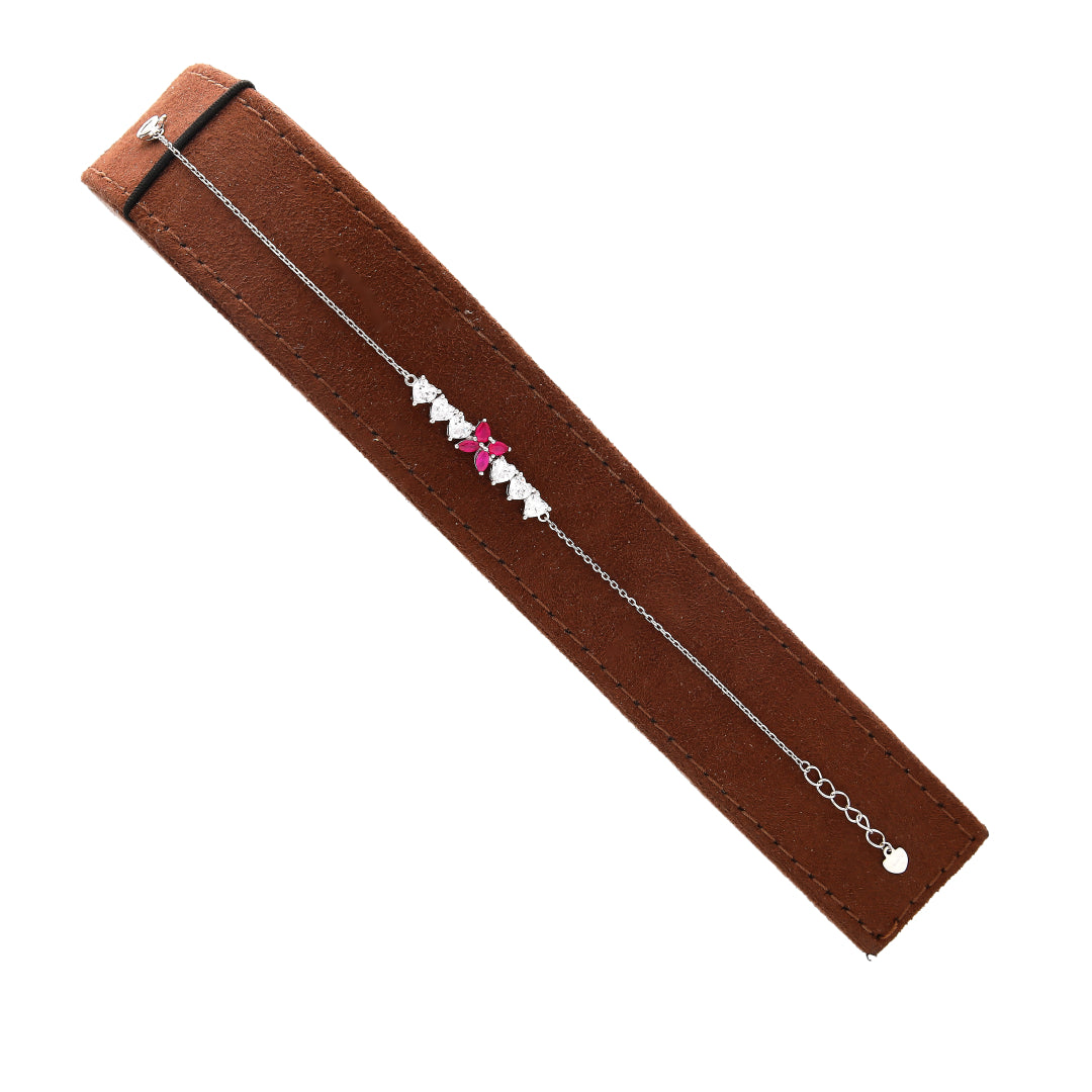 Sterling Silver 925 Pink Sparkling Heart Bracelet - FKJBRLSL10545