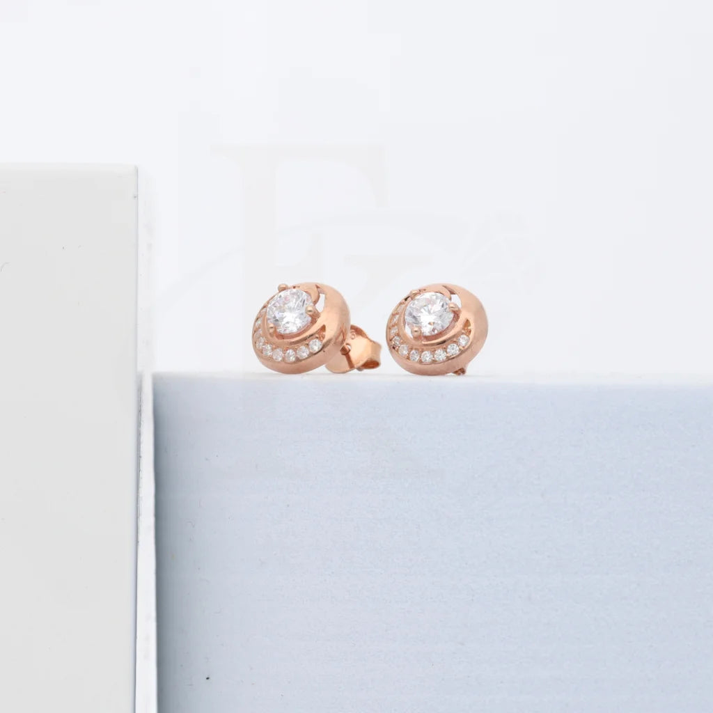 Sterling Silver 925 Rose Gold Plated Cubic Zirconia Stud Earrings - FKJERNSL8017