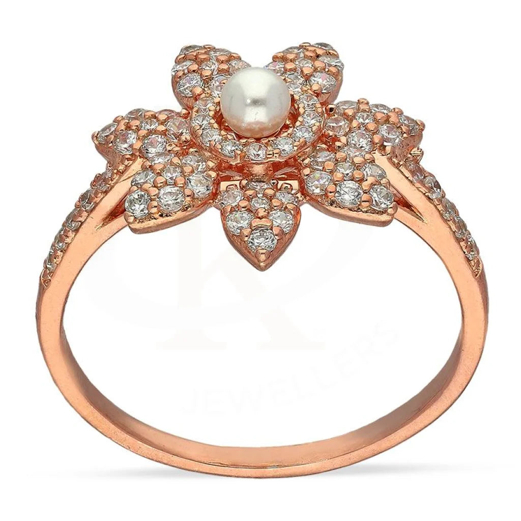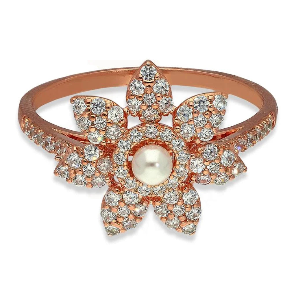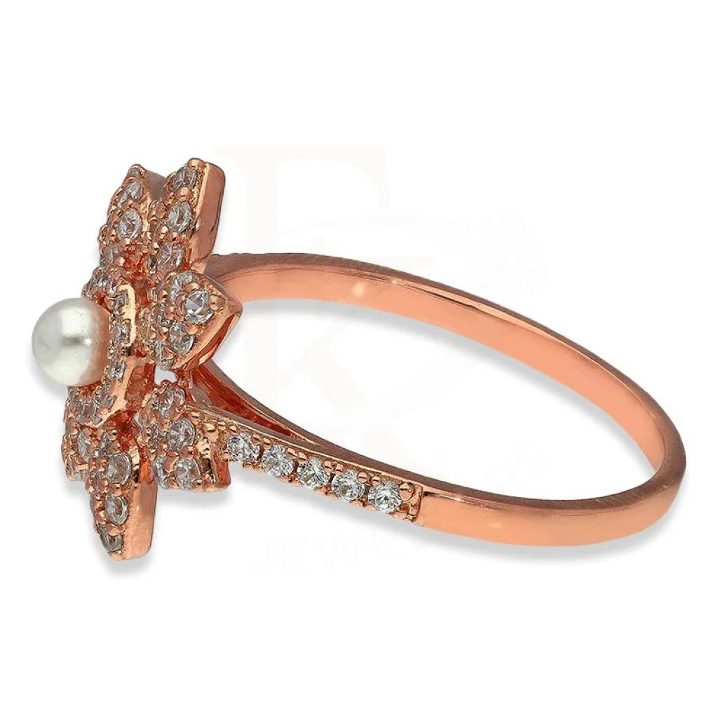 Sterling Silver 925 Rose Gold Plated Star Shaped with Pearl Ring - FKJRNSL2267